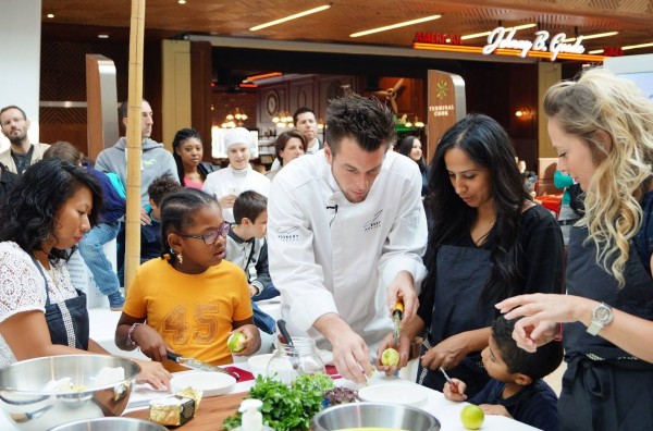 Le chef Norbert Tarayre collabore avec un centre commercial à l’occasion d’un évènement ayant pour but de sensibiliser le public au gaspillage alimentaire.
